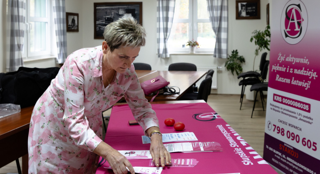 Teresa Kobylińska, emerytowana nauczycielka, zachorowała piętnaście lat temu po rutynowym badaniu. Wtedy w jej wsi Główczyce, leżącej niedaleko Słupska, mało się mówiło na temat raka piersi. – Kobiety wstydziły się o tym mówić. Kiedyś usłyszałam: „Nie dotykaj mnie, bo zarazisz”. Przechodnie bali się podejść do stoiska, tym bardziej że mamy na nim wyłożone fantomy piersi. Teraz już nikt nie odskakuje od nas jak od trędowatych. Mało tego, podchodzą coraz młodsze dziewczyny, bo dla nich to żaden wstyd — opowiada.
