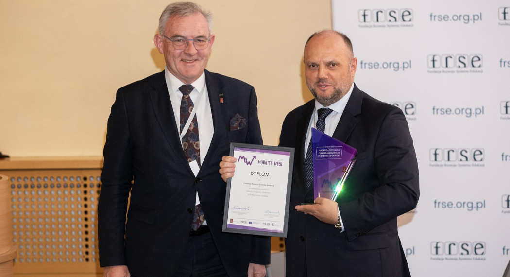 Jednym z ważniejszych momentów wydarzenia było uhonorowanie Mirosława Marczewskiego, dyrektora generalnego FRSE, Nagrodą Specjalną Politechniki Łódzkiej. Wyróżnienie za wieloletnie wsparcie rozwoju programu Erasmus+ na uczelni wręczył prof. dr hab. inż. Krzysztof Jóźwik, rektor Politechniki Łódzkiej.