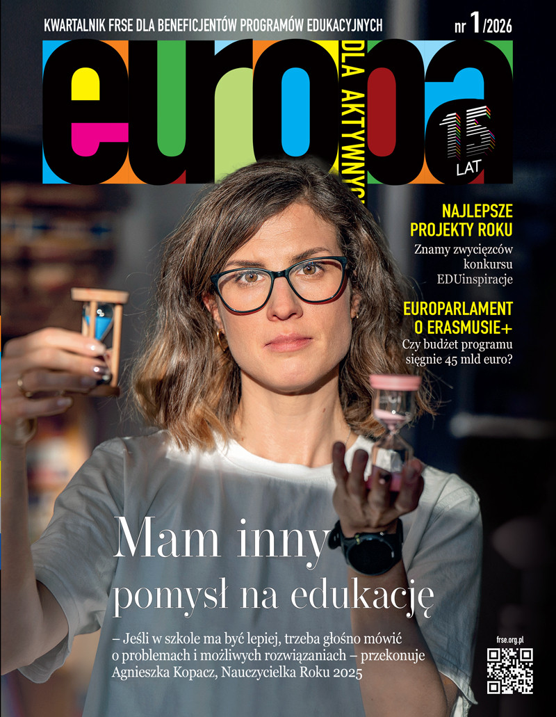 W najnowszym numerze „Europy dla Aktywnych” przedstawiamy perspektywę finansową 2028–2034 programu Erasmus+. Będzie nieco więcej pieniędzy na mobilności i partnerstwa, a wśród ważniejszych nowości znajdą się m.in. powrót do Erasmusa+ działań wspierających wolontariat oraz pojawienie się Europejskich Sojuszy Szkół. Komisja zamierza również położyć większy nacisk na budowanie kompetencji niezbędnych w czasie kryzysu. Przyszłość Erasmusa+ to najważniejszy temat numeru, ale niejedyny. Wiele miejsca poświęciliśmy polskiej szkole: przyglądamy się zmianom, jakie czekają uczniów w bieżącym roku szkolnym, i pokazujemy, że edukacja to nie tylko lekcje – podpowiadamy, jak zdobyć stypendium IKR Junior na zajęcia pozalekcyjne rozwijające pasje. W numerze znajdziecie również nieocenione rady, jak korzystać z Platformy Rezultatów Projektów – nieocenionej bazy wiedzy i inspiracji. Tradycyjnie proponujemy też tematykę dla tych, którzy lubią być na czasie: sprawdzamy, czy bycie tutorem dla emerytów to coś dla Was, przyglądamy się cobotom jako przyszłości świata zawodowego i podpowiadamy, jakich przedsiębiorców będzie potrzebowała gospodarka jutra. A na deser – wielkie święto zawodowe: konkurs EuroSkills Herning 2025. Nasi reprezentanci wrócili z tarczą, a my dzielimy się pełną relacją z tego wyjątkowego wydarzenia. Zapraszamy do lektury!