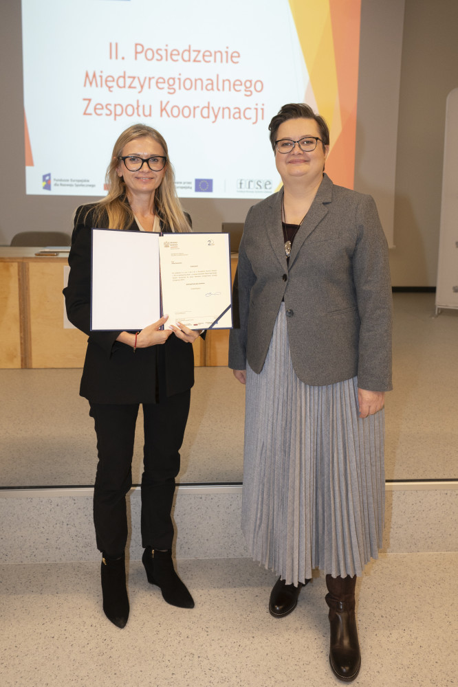 W dniu 29.10.2024 r. w siedzibie Ośrodka Rozwoju Edukacji w Warszawie odbyło się spotkanie inaugurujące działania Międzyregionalnego Zespołu Koordynacji (MZK). Wydarzenie otworzyła Sekretarz Stanu w Ministerstwie Edukacji Narodowej, Pani Katarzyna Lubnauer, która wręczyła także powołania dla członków i członkiń Zespołu. W spotkaniu uczestniczyła również Pani Alina Prochasek, członkini Zarządu FRSE.