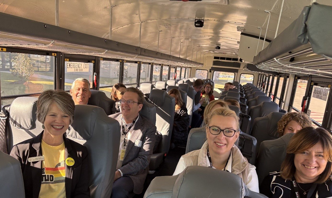 Po spotkaniu w WGHS uczestnicy delegacji mieli okazję przesiąść się do klasycznego żółtego autobusu szkolnego i udać się do Hays Middle School, kontynuując obserwacje i wymianę doświadczeń związanych z programem Hope Squad.